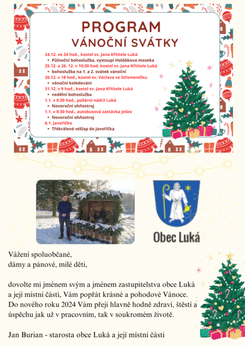 Úvod > Život v obci > Akce > Vánoční program - Blahopřání