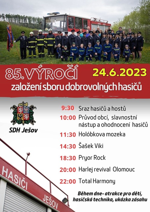Pozvání na oslavy založení SDH Ješov