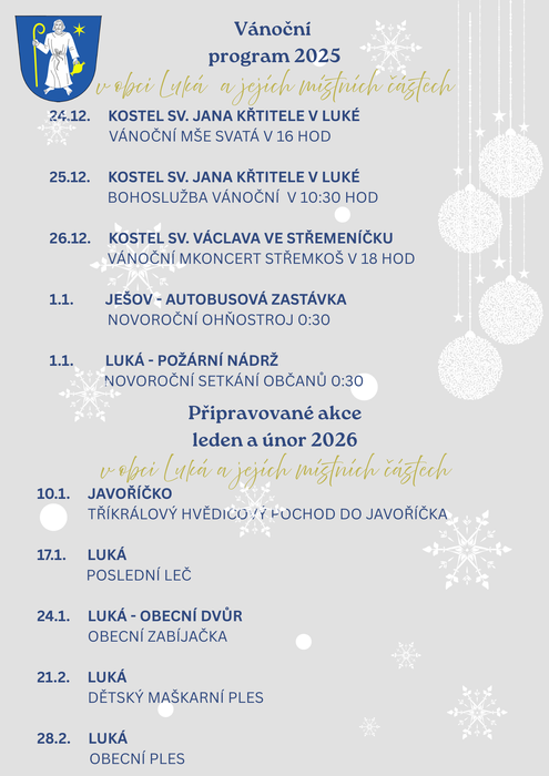 Úvod > Život v obci > Aktuality > Vánoční program v Luké a jejích místních částech
